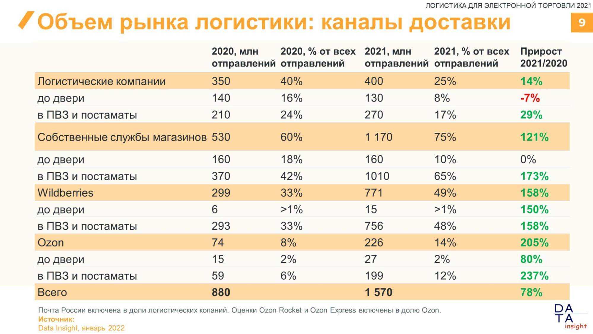 Приведем данные из отчетов крупнейших маркетплейсов страны.