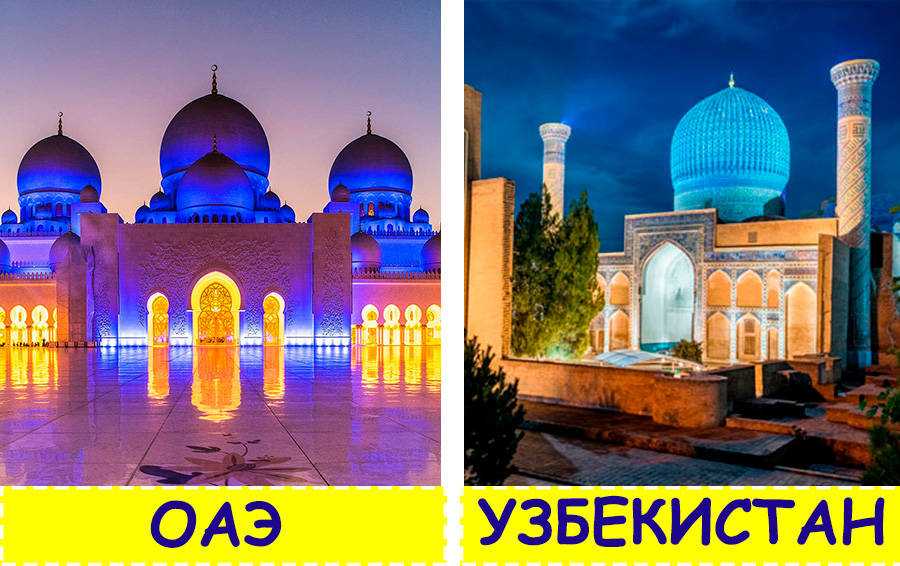 Мечеть шейха Зайда, расположенная в Арабских Эмиратах, поражает своим великолепием, роскошью убранства и богатством. Зато мечети Самарканда – одни из самых старых на планете, они выстроены в традиционном монументальном стиле. Эмираты славятся туристическими аттракционами для зажиточных людей, и в этой стране можно купить все что угодно – включая самые люксовые товары. В Узбекистане поменьше туристов – а в провинции их может и не быть вовсе, зато там можно отыскать настоящий антиквариат на местных базарах и полностью погрузиться в атмосферу реальной восточной сказки. И плова, полностью аутентичного плова поесть.