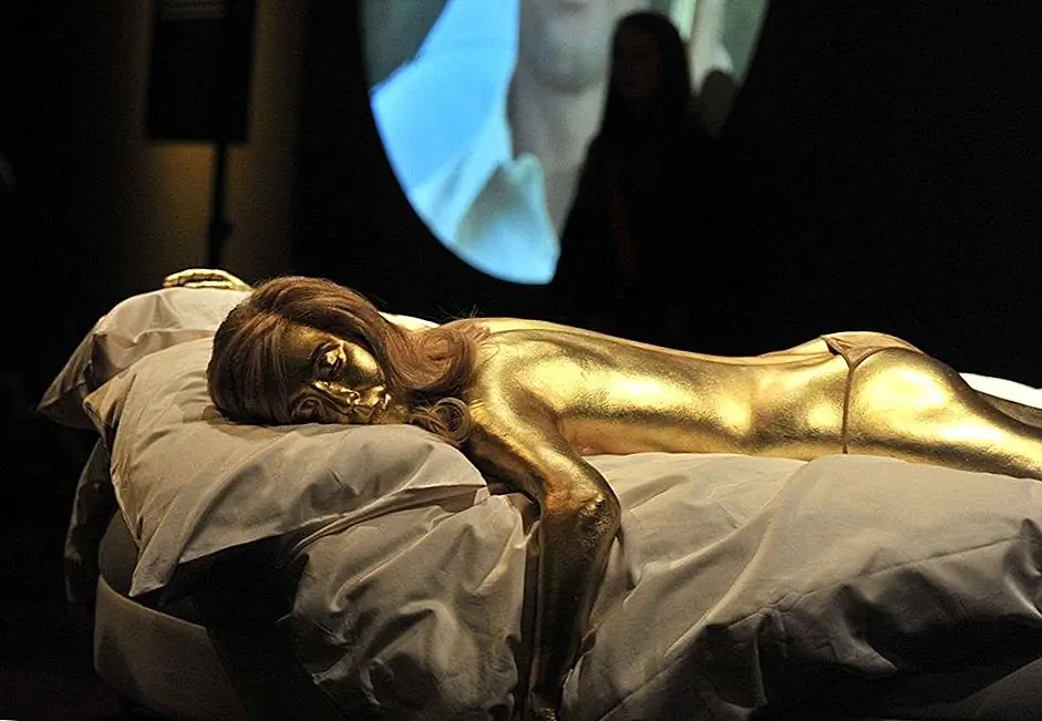 В 1964 году Голдфингер главный злодей отправляет предательского секретаря, рисуя все ее тело золотой краской. Как объясняет Бонд, ее причиной смерти было удушение; так как организм дышит через поры в коже, блокируя все эти поры краской, лишает тело кислорода. Это неправда; в то время как у человека может быть неблагоприятная реакция на краску на их коже, вы не можете умереть от удушья, если рот или нос не заблокированы. Тем не менее, продюсеры были достаточно озабочены соблазнительной судьбой, что на всякий случай они оставили шестидюймовый патч актрисы Ширли Итон, живот, незакрашенный.