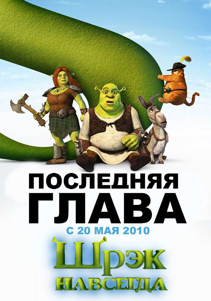 Но всё же трудно сказать, что четвёртый фильм анимационной эпопеи «Шрек», в корне меняет всю идейную концепцию фильма. Смысловая инверсия сказочных персонажей, а значит и традиционных ценностей, которые они выражают, так и осталась. На дне рождения детей Шрека праздничный торт готовят сказочный мужчина-трансвестит и волк в чепчике съеденной им бабушки. А главного героя выводят из состояния душевного равновесия вполне безобидные в нашем, повторюсь, традиционном представлении персонажи – три поросёнка, которые съели абсолютно всё угощение для гостей и один очень наглый мальчик, который просил своего отца заставить Шрека издать рычание огра.