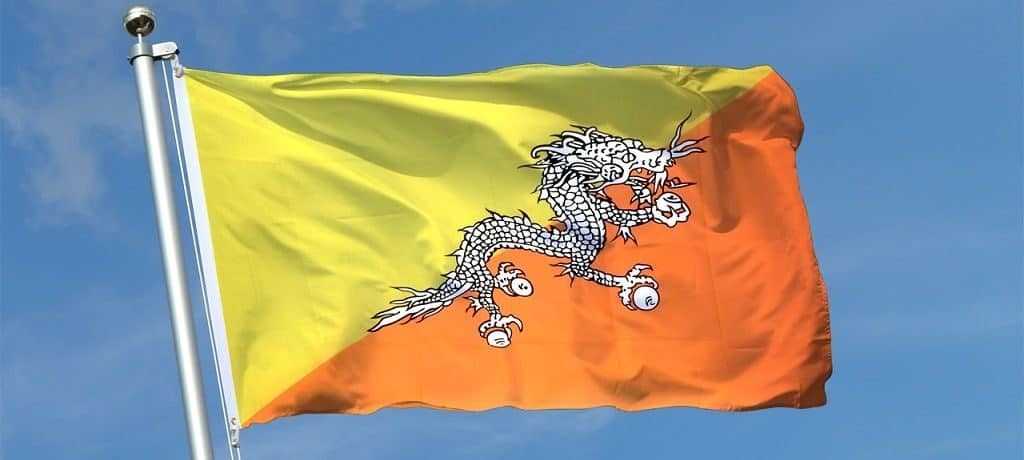 Что касается национального флага, то главной фигурой на нем является белоснежный дракон. В лапах у него зажаты драгоценные алмазы, указывающие, насколько богата материально и духовно страна. А зубастая пасть мифологического животного говорит о храбрости и могуществе нации. Само же полотно условно разрезано по диагонали на две части — оранжевую и желтую. Первая символизирует буддизм, а вторая теократическую монархию.