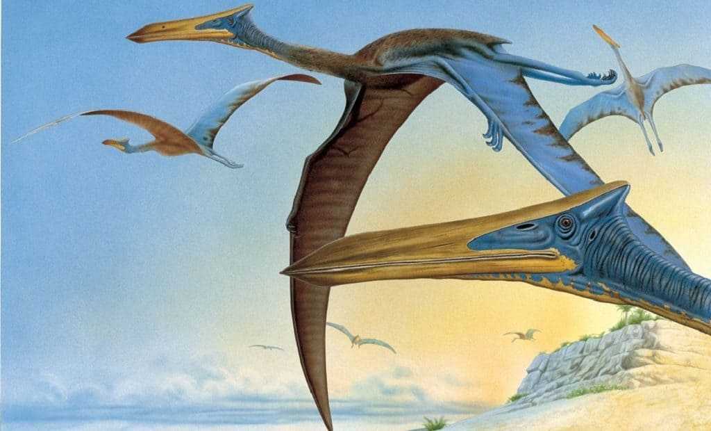 В мезозое появились птерозавры. Предположительно, самым крупным из них был орнитохейрус, имевший крылья, размах которых составлял до 15 метров. Жил он в меловом периоде, был хищником и предпочитал охотиться на крупную рыбу. Птеранодон — еще один крупный летающий хищный ящер мелового периода.