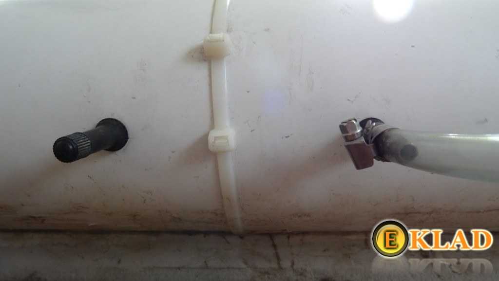 С одной стороны трубы я просверлил два отверстия на 13 мм., чтобы можно было вставить штуцера, которые используются в бескамерных колесах для автомобилей, и еще одно отверстие с другой стороны. Так же, с четырех сторон, я прицепил маленькие колечка затяжками, чтобы к ним можно было цеплять веревку или разные приспособления.