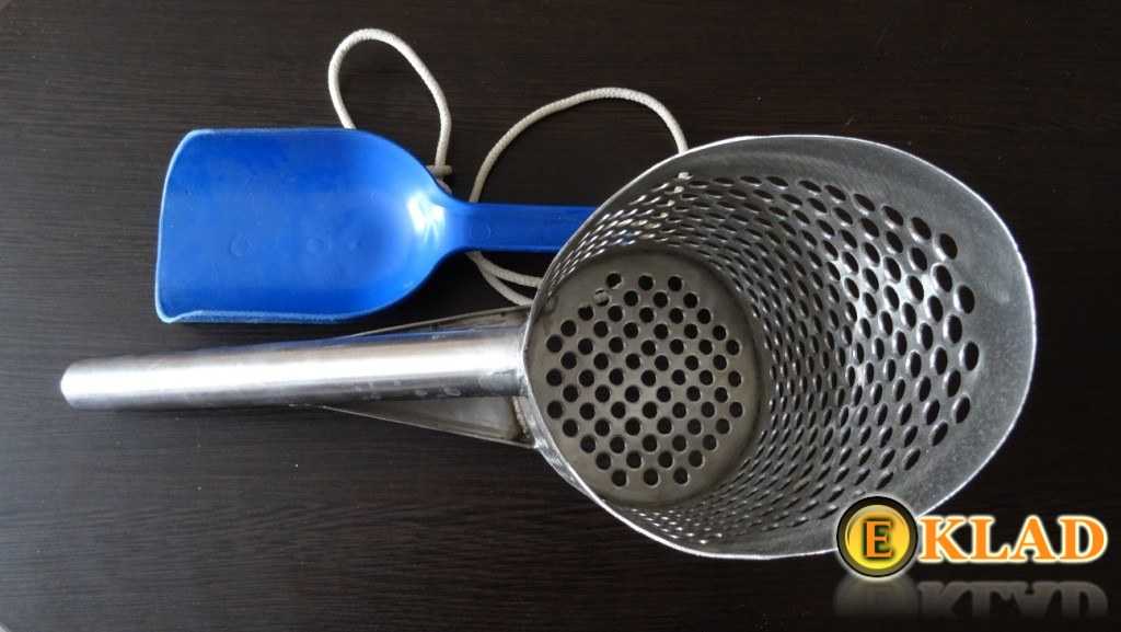При испытаниях системы, столкнулся с такой проблемой, как твердый покров дна, для этого пришлось купить огородную лопатку. Также, чтобы исследовать береговую линию, я приобрел скуп для пляжного поиска.