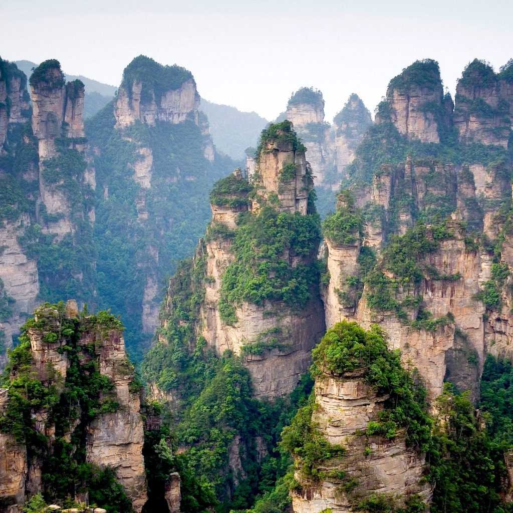 Сотни водных источников и тысячи горных вершин спрятаны в горах Тяньцзи в Китае. Самая высокая вершина горы – 1262,5 метра над уровнем моря. Вокруг вьются хребты, острые вершины и живописные утесы.