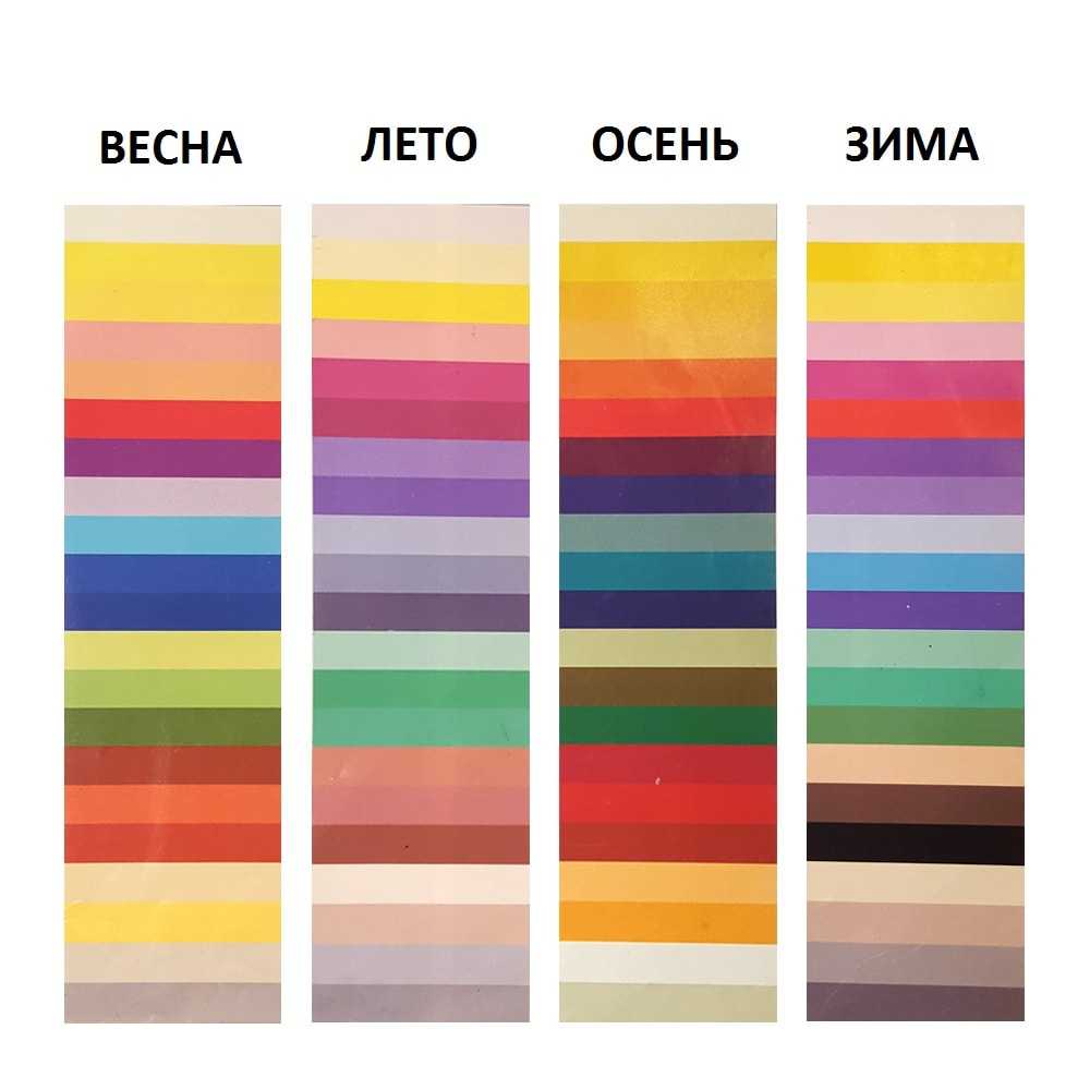 Например, теория «времен года» делит оттенки всех цветов на 4 группы по временам года. В каждой группе есть все цвета цветового круга, разница между группами заключается в подтоне. При этом в рамках одной группы/палитры (одного времени года) все цвета сочетаются между собой.
