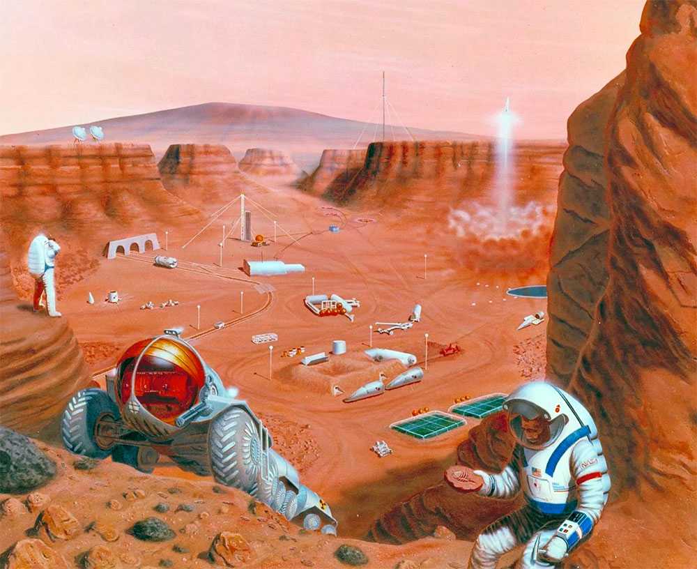 В фантазиях художников колония на Марсе выглядит так. Ответ на марсианские загадки может дать только человек – и пока человек не ступит на поверхность красной планеты, мы не получим большинство ответов