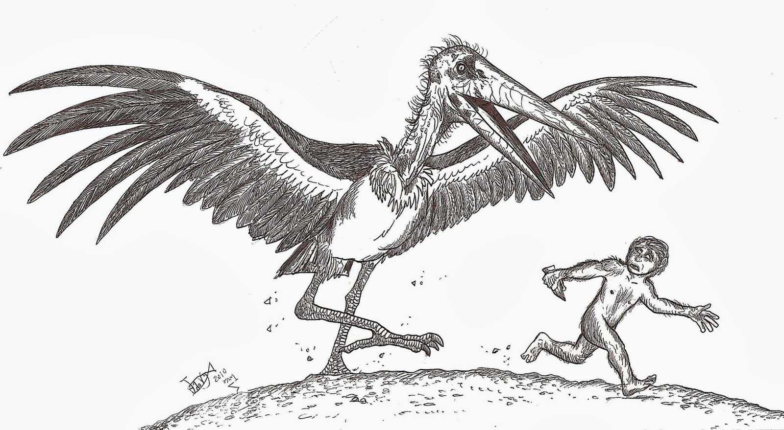 Вспомните гигантских Орлов из мира Средиземья. Они были посланниками великого валара Манвэ, которые в нужный момент не раз спасали не только хоббитов, но и всех остальных. На Флоренсе было нечто подобное. Огромные аисты-марабу ростом до 1, 80 м для метровых хомо флоресиенсис должны были казаться чем-то поистине чудовищным. И вряд ли марабу им хоть чем-то помогали — по некоторым сведениям, наоборот: могли запросто унести их детей, как каких-нибудь цыплят. http://www.membrana.ru/particle/4606