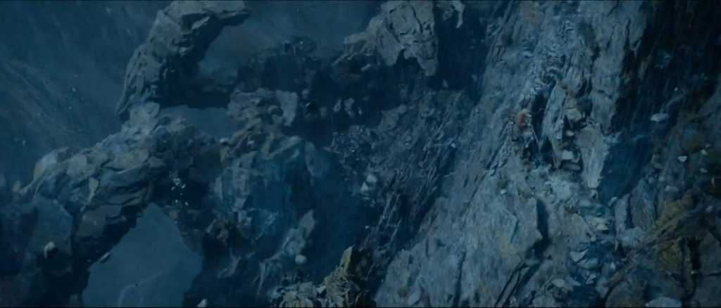 Подняв глаза, они понимают, что какофония звука на самом деле — это пара гигантов, которые для развлечения бросают друг в друга камни. В версии Джексона эти гиганты выглядят так, как будто их легко принять за настоящие горы из-за их высокого роста и скалистых форм. Это также хорошо, что они, кажется, мало заботятся о делах более мелких людей, которые живут ниже их.