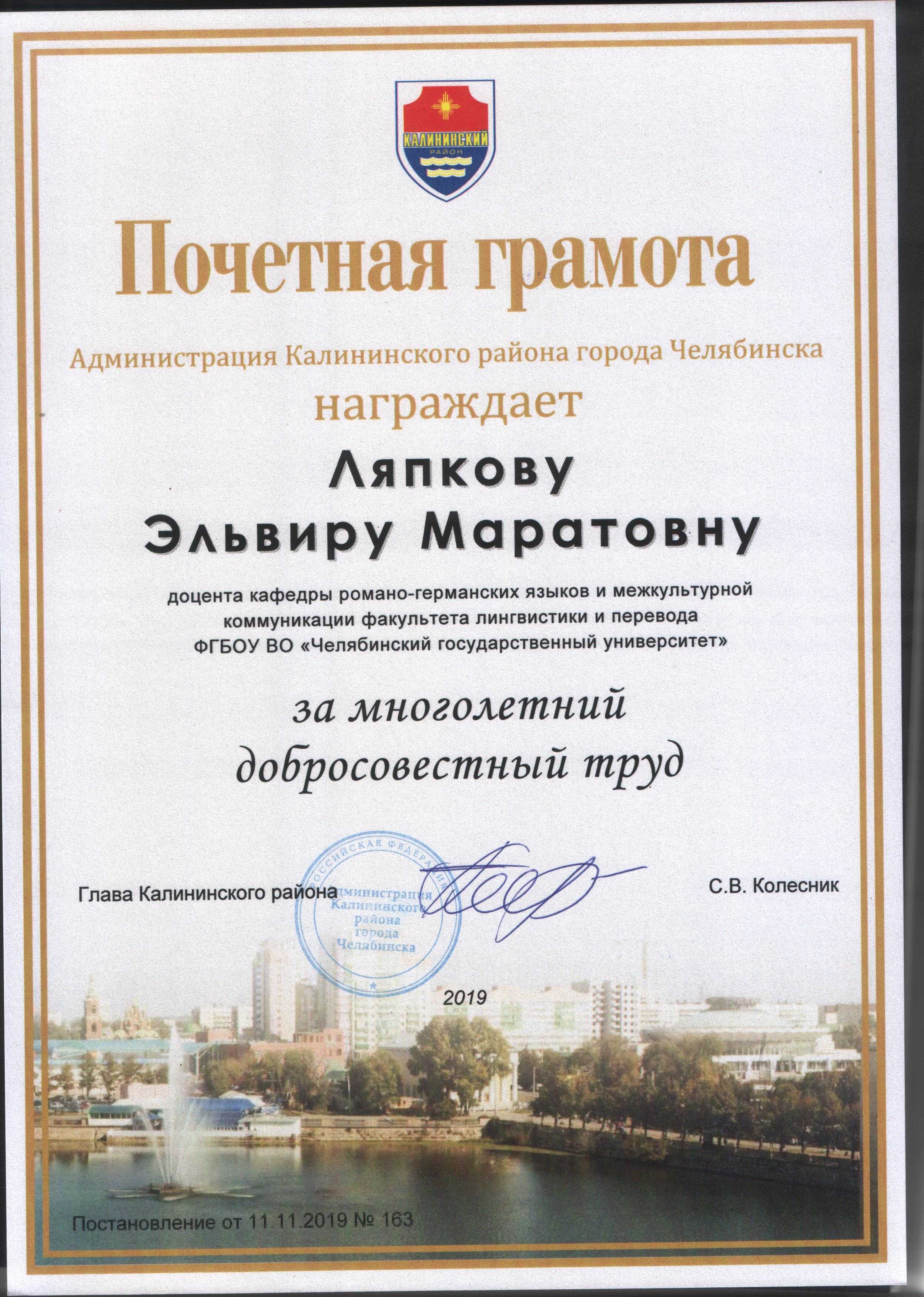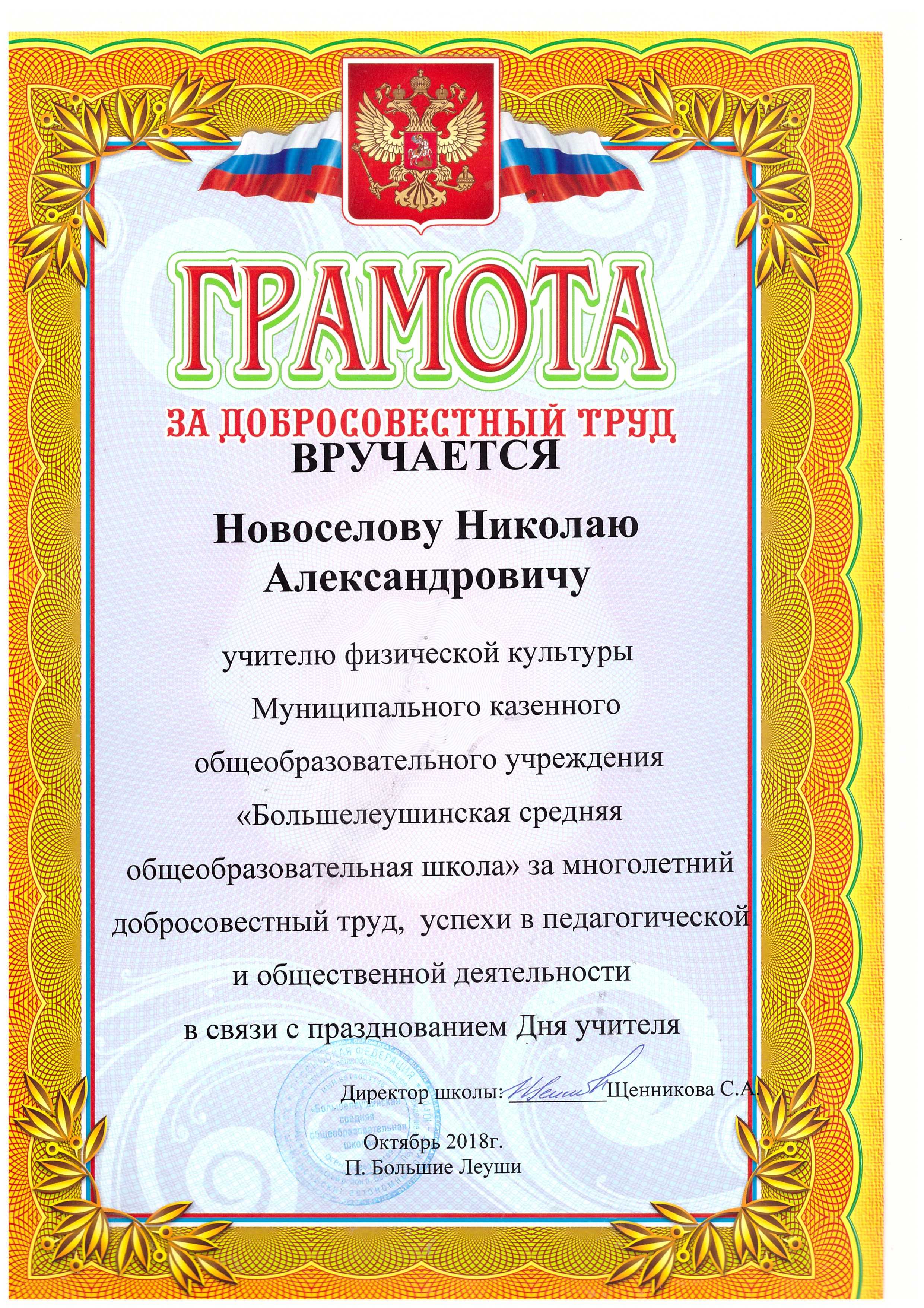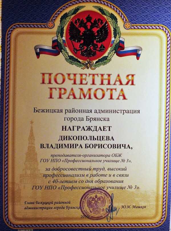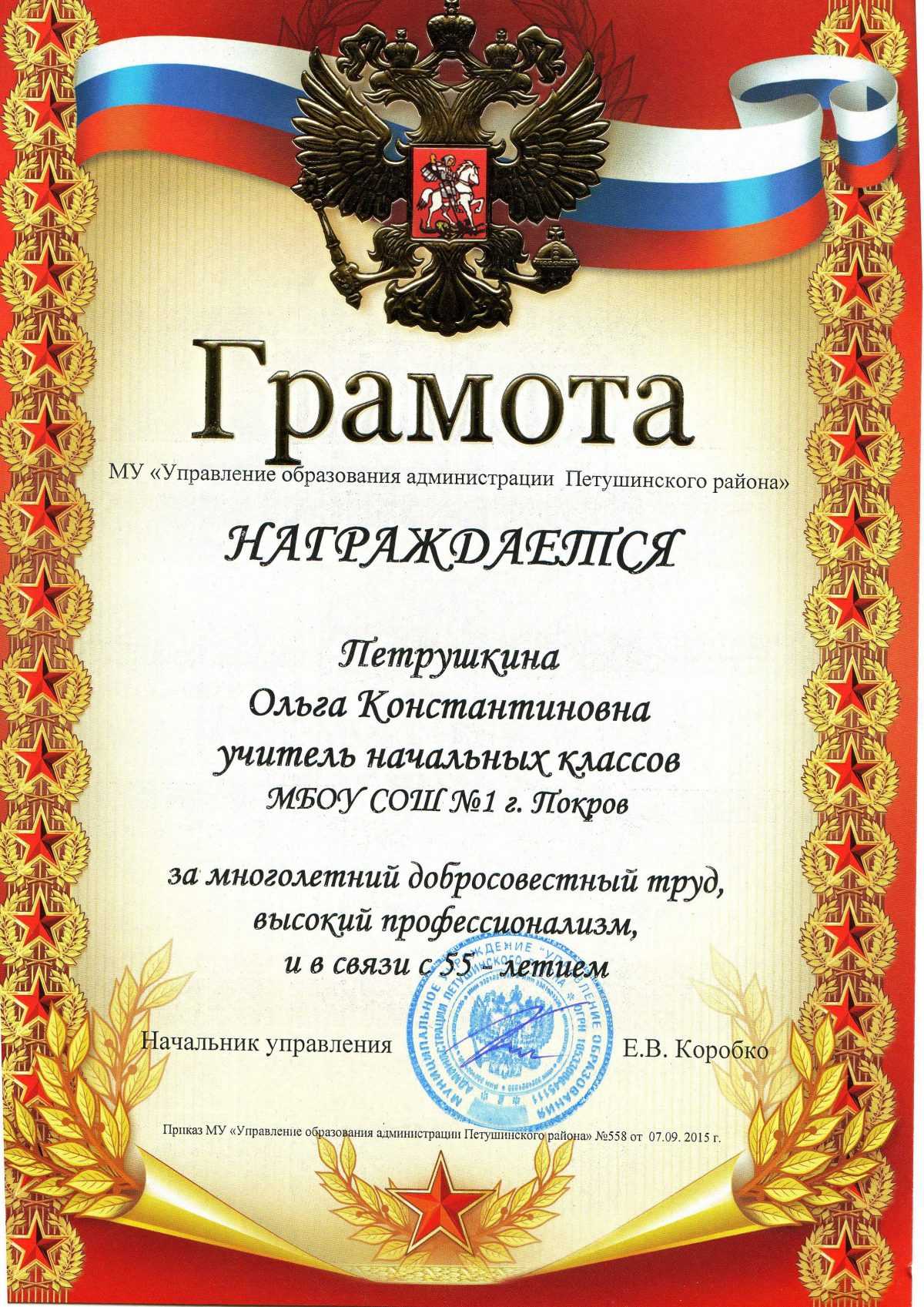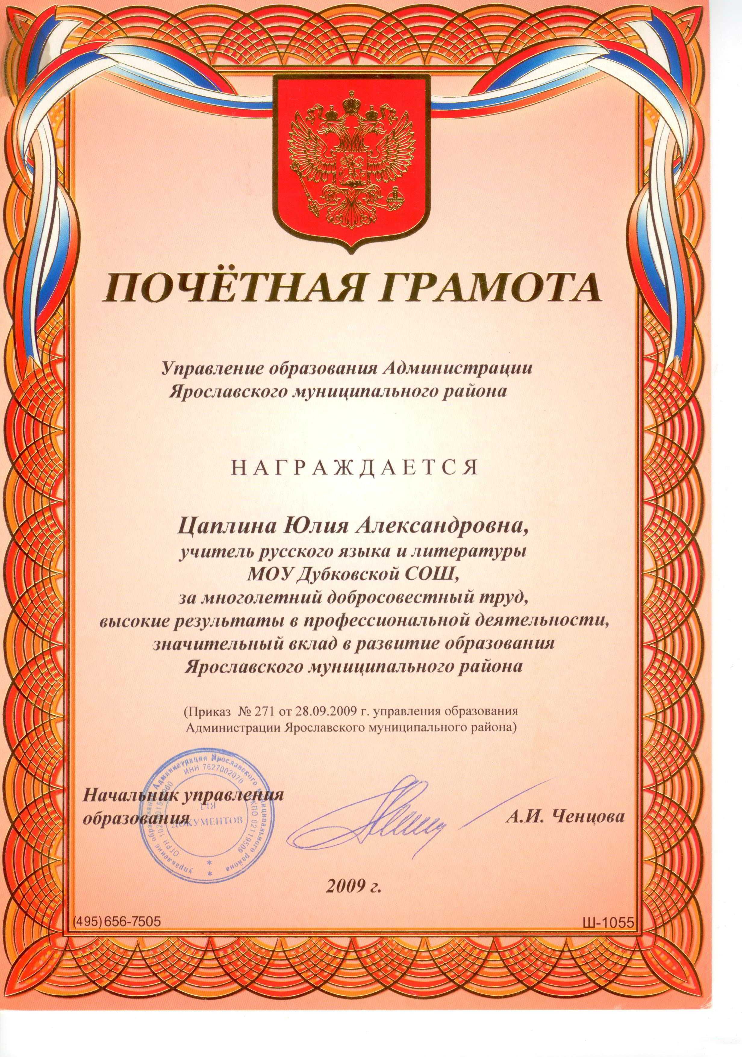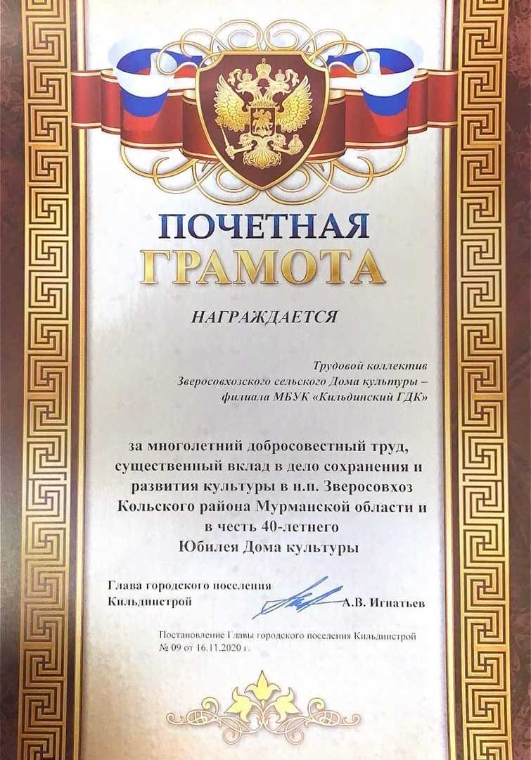- Вносится ли почетная грамота?