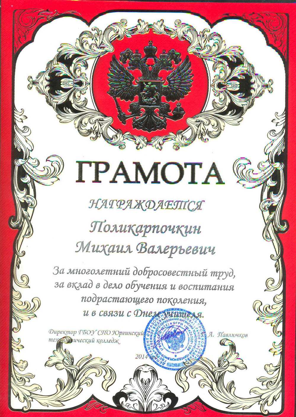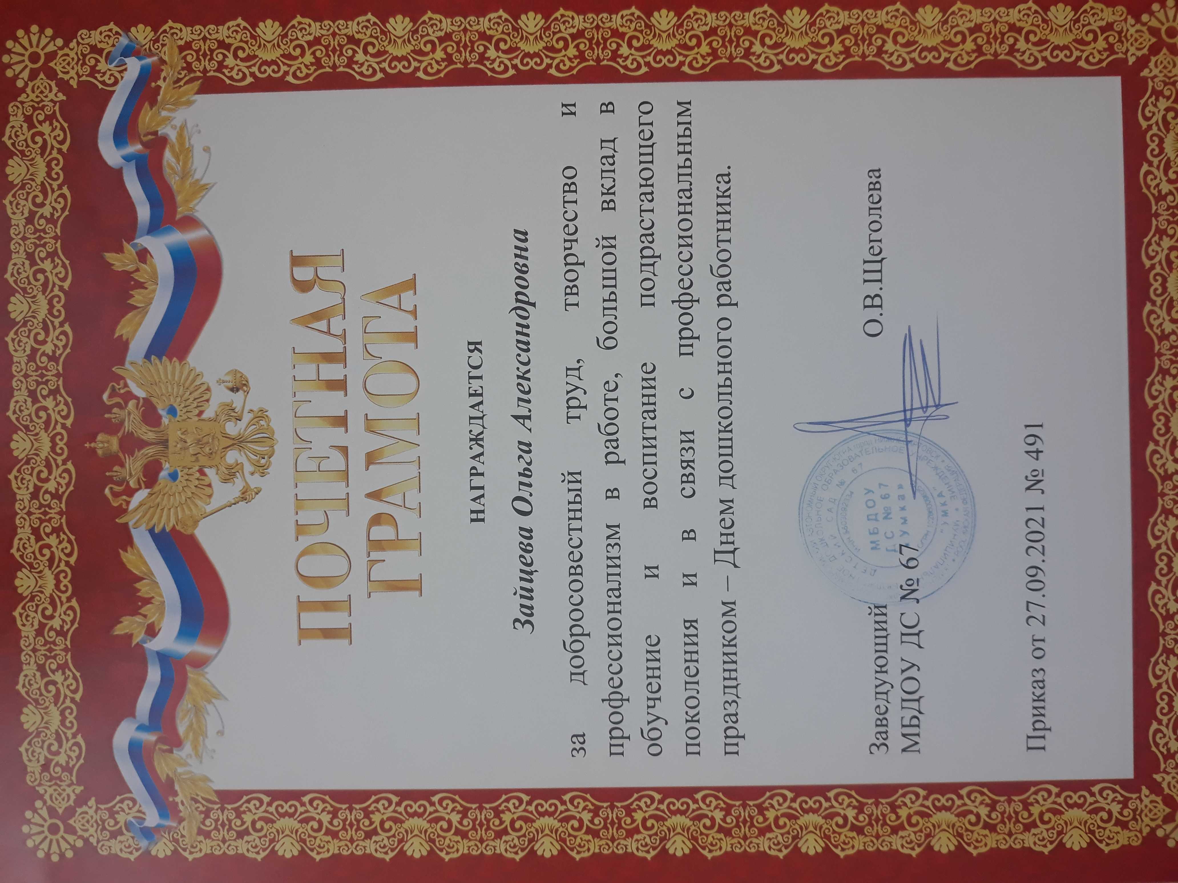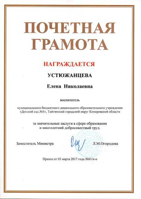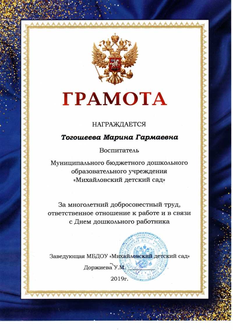 - Грамотой награждают, если человек показал себя, как хорошего воспитателя