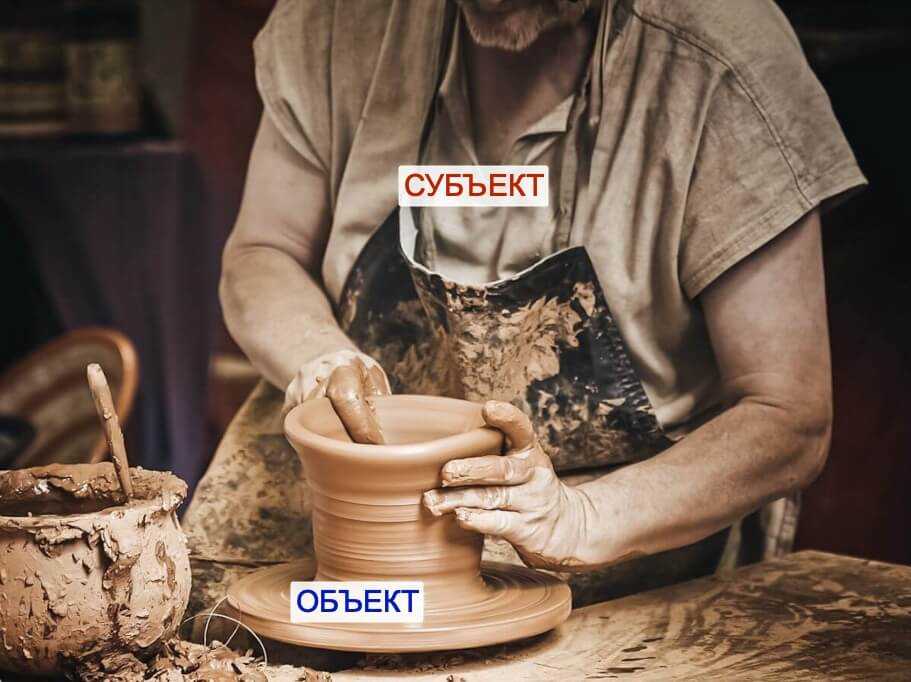 В трудовых отношениях субъектом является лицо, которое в них участвует (рабочий, инженер, инспектор по охране труда). А тот продукт, который они изменяют либо создают, являются объектом (строительные материалы, кулинарные блюда, мебель). Таким образом, главное отличие между данными категориями – это направленность действия. Только субъект может изменять объективную реальность, выделяясь из неё.