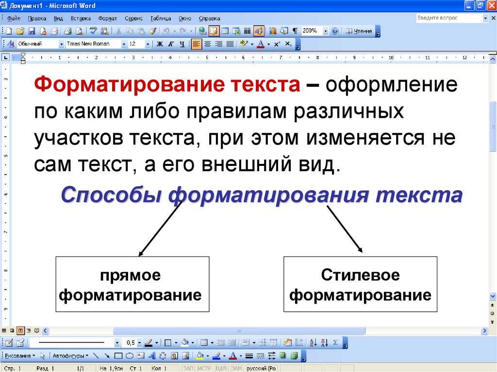 Создание читабельного текста требует проработки не только его сути и грамотности, но и внешнего вида. Наравне с опечатками и ошибками, могут отталкивать разъехавшиеся слова или строчки. При оформлении документа выполняется несколько видов операций форматирования. Они могут применяться как для всего документа, так и для конкретного абзаца или отрывка, для этого нужная часть текста должна быть выделена. Какие операции используются для форматирования текста?