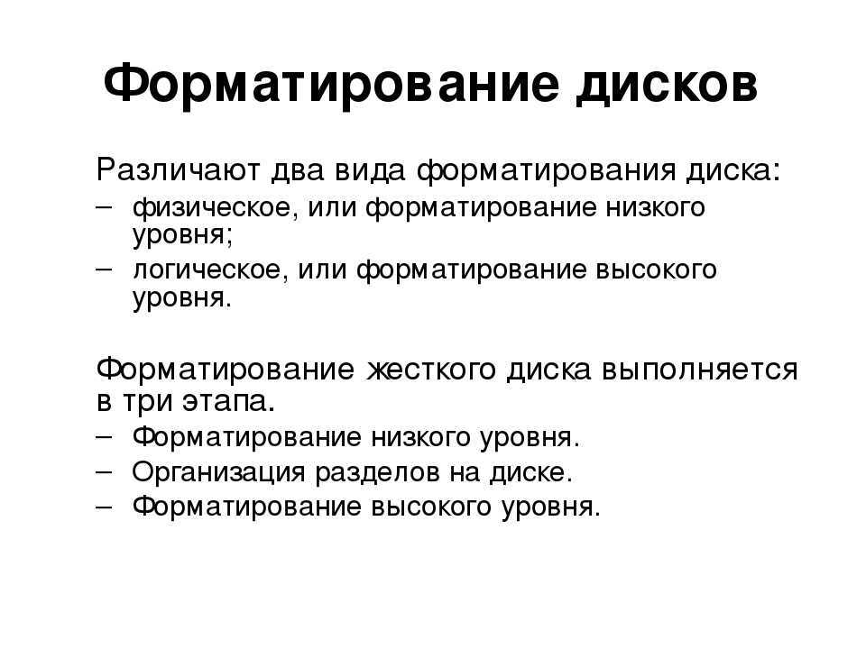 По сути, существует два типа или способа форматирования жесткого диска, их различие основано на теории и способах форматирования.