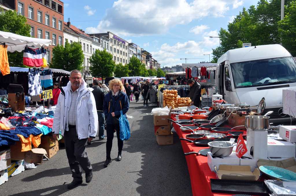Базар в Брюсселе начинается прямо у вокзала и тянется ещё очень долго: одежда, обувь, сумки, какие-то разноцветные тряпки, хозтовары, тут же жарят на гриле кур, разложены на пробу сто и один вид маслин и оливок, а также овощи, фрукты, сыры и турецкий хлеб…