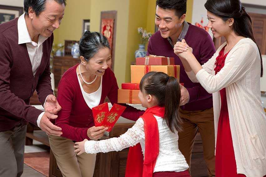 - дарение подарков – одна из любимейших традиций в Поднебесной. Самым распространенным и универсальным вариантом является вручение красного конверта Хунбао. В него кладут деньги и открытку с пожеланиями;