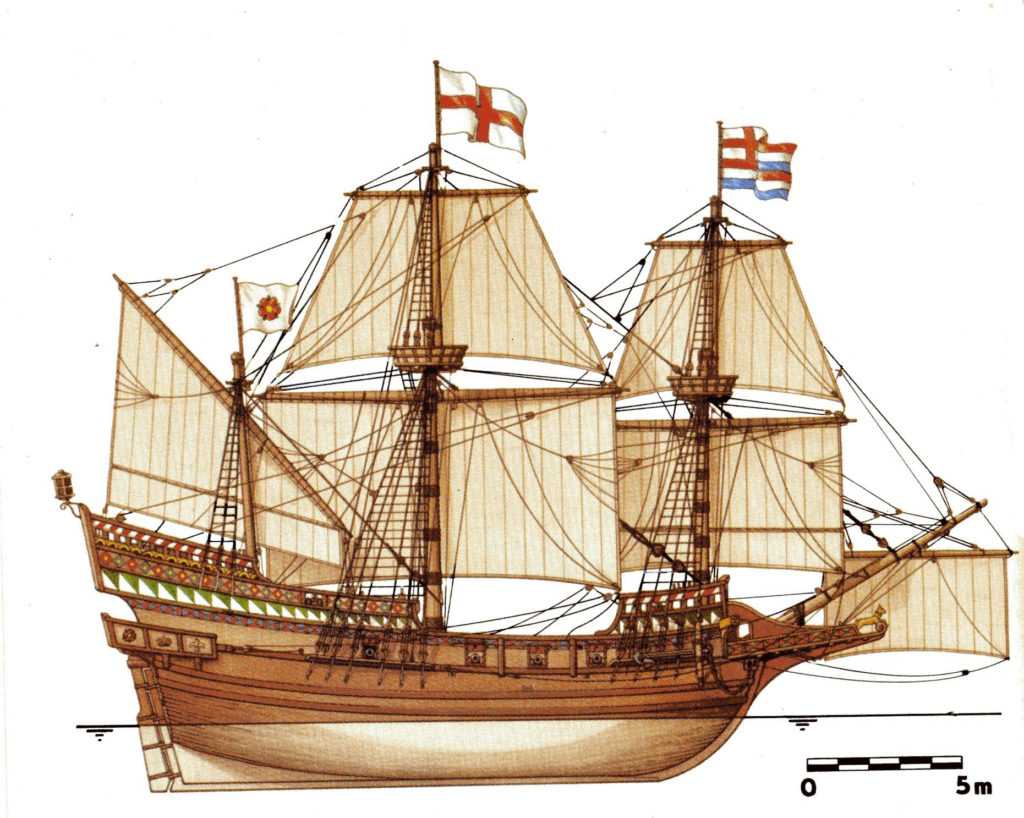 - Каррек-паруса: галеоны использовали каррек-паруса на передней мачте, которые были косыми и прямоугольными. Эти паруса обеспечивали лучшее движение вдоль ветра и улучшали стабильность корабля.