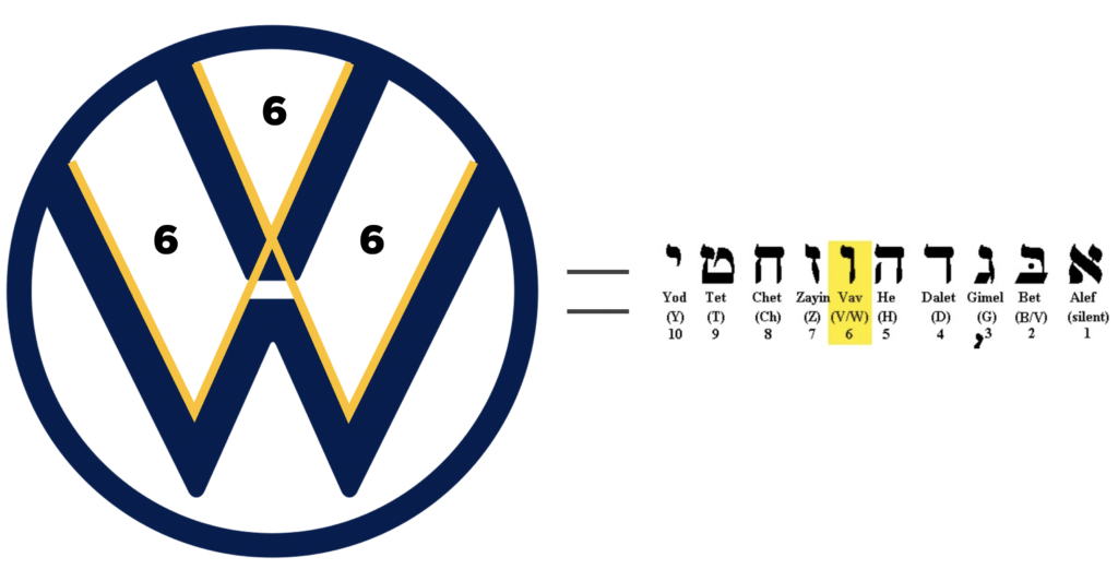 Что касается «Жука», то в эмблеме логотипа кроются «666″. Доказываю на разборе логотипа. Желтыми линиями выделила три буквы «V».
