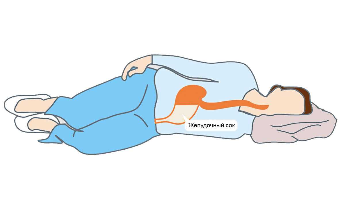 Исследования говорят о том, что когда туловище лежит на левом боку, желудочному соку сложнее попасть обратно в пищевод² — в отличие от сна на правом боку. Но, опять же, если вы не страдаете от проблем с желудком и не переедаете на ночь, сон на правом боку также вполне допускается.