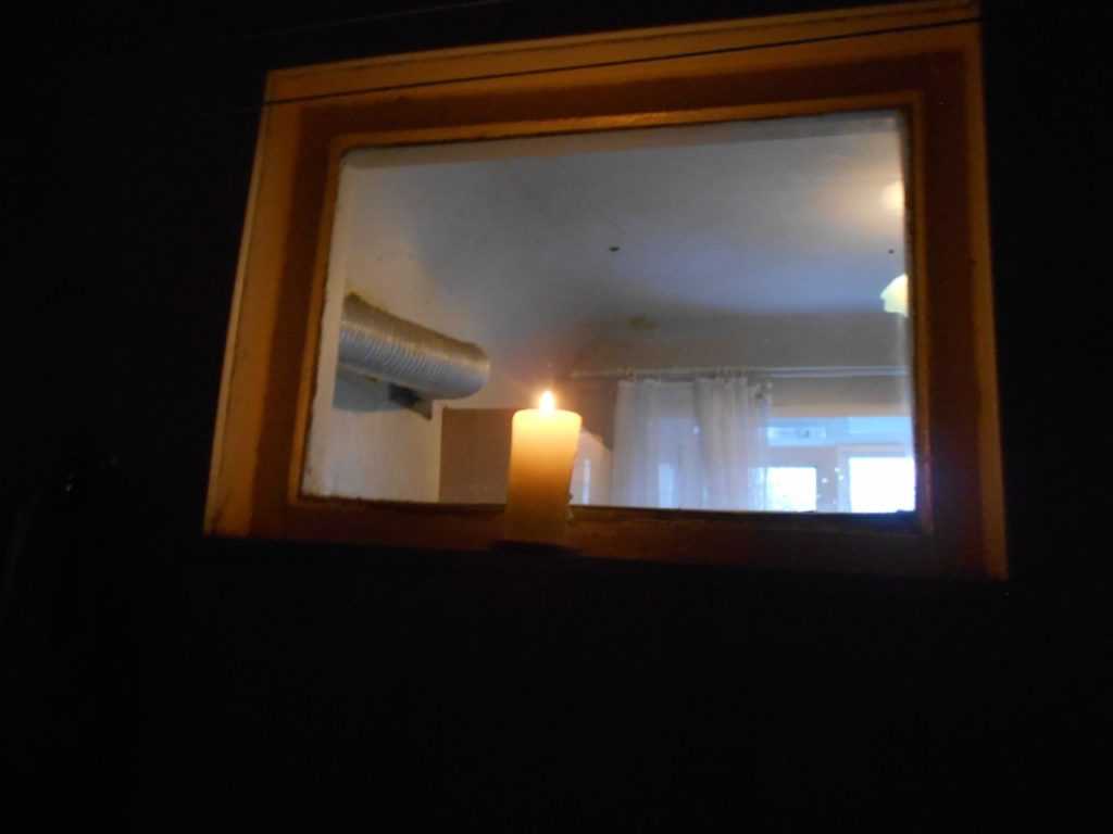 Со свечкой – вариант так себе. Годится, если в ванне перегорела лампочка и запасной нет. Лучше – подсветка от кухонной люстры!
