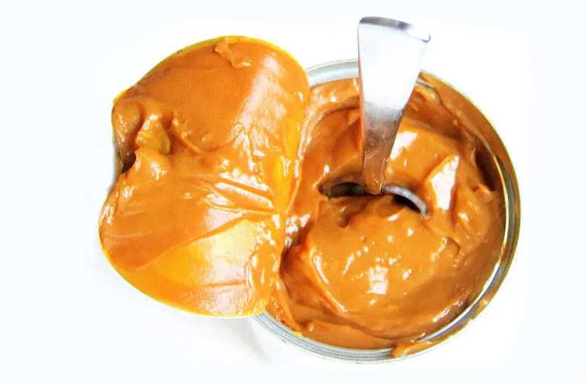 Вареная сгущенка. Это самое густое сгущенное молоко, с характерным карамельным вкусом и цветом. Помимо консистенции и вкуса, есть существенная разница в приготовлении: такая сгущенка намного дольше проходит термообработку. А вот по калорийности она ничуть не уступает классическому лакомству: все те же 310–330 ккал.