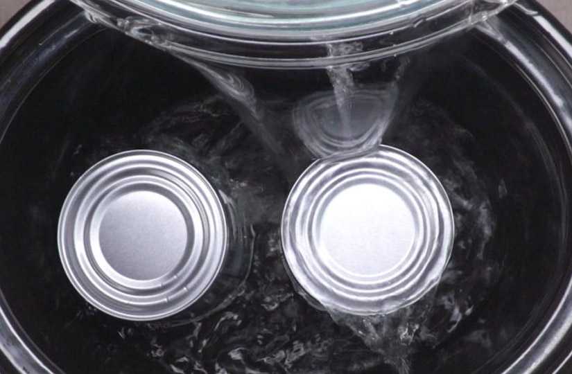 Если подходящей глубокой тары нет, то постоянно следите за тем, чтобы количество жидкости превышало верхнюю границу банки не менее чем на 5 см. Как только вода начала выкипать, доливайте ее. Но, дополнять можно только горячую воду. При дополнении холодной жидкости произойдет перепад температур, из-за чего банка может лопнуть.