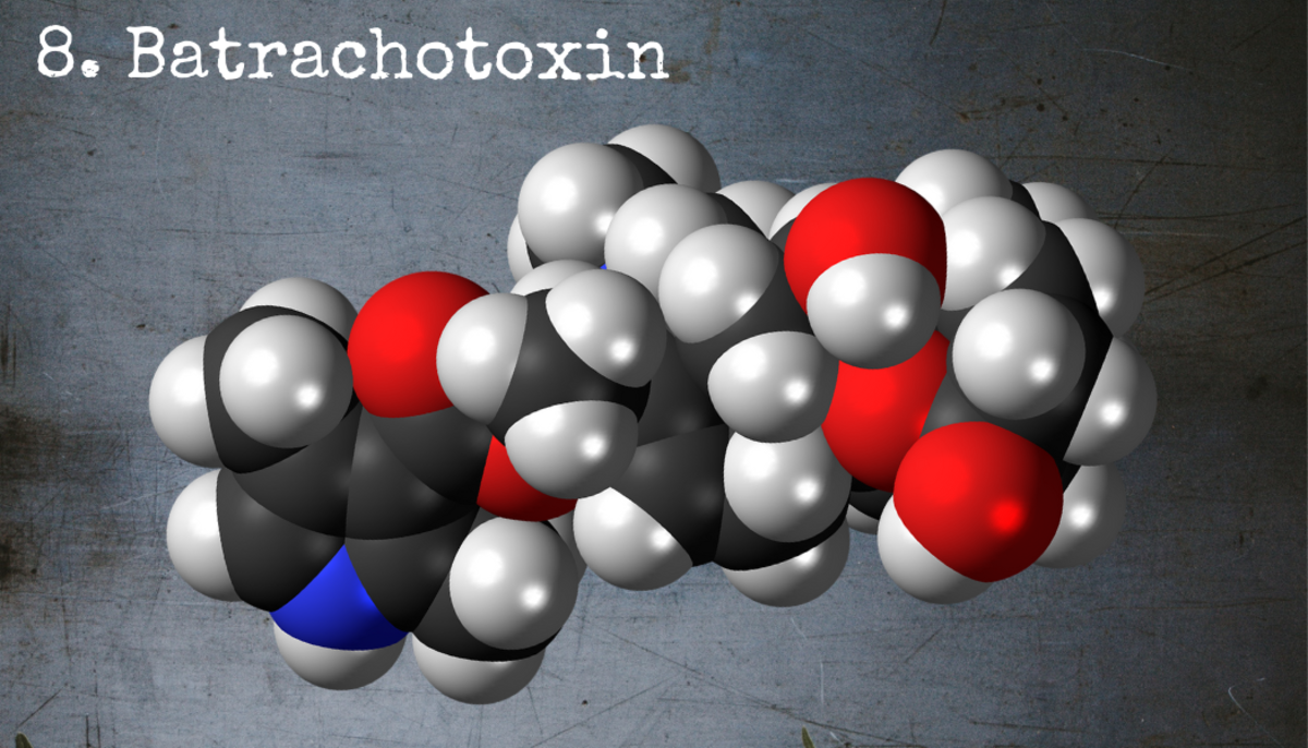 Батрахотоксин, который содержится на коже некоторых лягушек, обитающих в Южной Америке, является одним из самых сильных ядов, известных человеку. Для смертельного исхода требуется всего два микрограмма на килограмм, а это значит, что взрослый человек может быть убит дозой, не превышающей нескольких крупинок соли. Это нейротоксин, что означает, что он оказывает свое действие, не позволяя нейронам отправлять друг другу электрические сообщения, вызывая паралич и в конечном итоге смерть. Страшная штука!