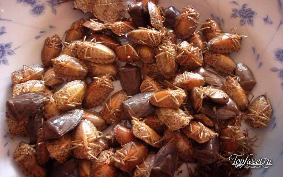 На фото: Обжаренные клопы на лепешке