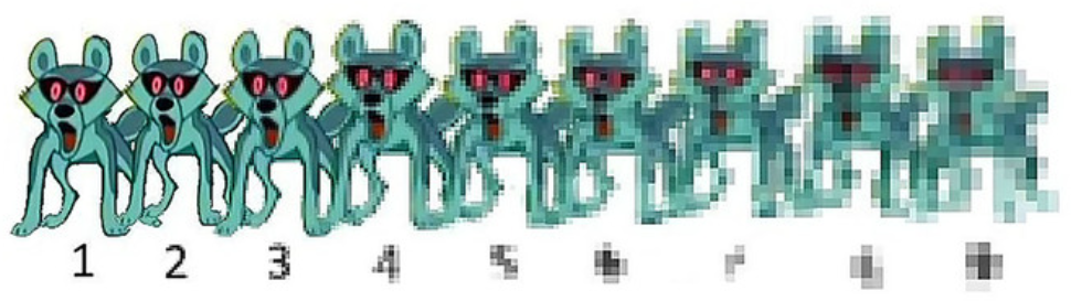Шкала шакалов — классический пример ухудшения качества изображения при уменьшении количества и увеличении размера пикселей в нем. Источник
