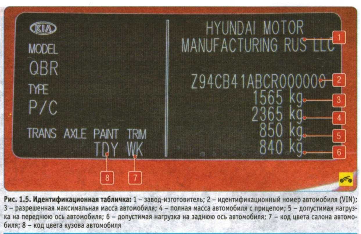 Табличка Киа Рио 3. 3 — разрешенная максимальная или полная масса. 4 — вес с прицепом