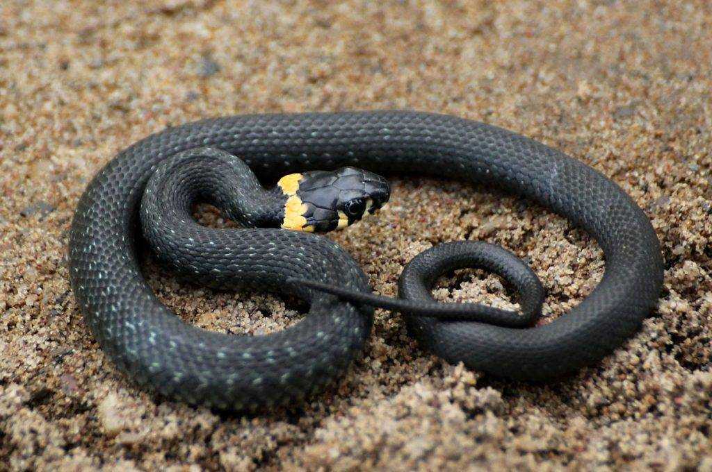 Этих змеек часто можно встретить вблизи лесных водоемов: они отличные пловцы. Для человека уж не опасен.