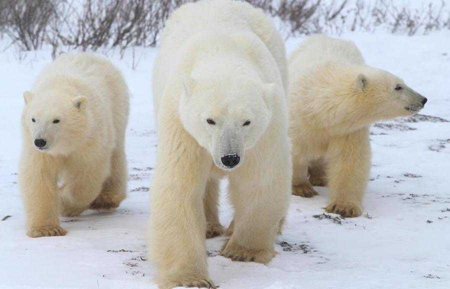 Полярные медведи, имеют длину тела 2,5 метра, а весят 800 кг и являются одними из самых крупных животных в мире. Белый медведь, проводит большую часть своей жизни в ледяных водах Арктики. Они могут непрерывно плавать до 65 км и погружаться глубоко под воду в поисках добычи.