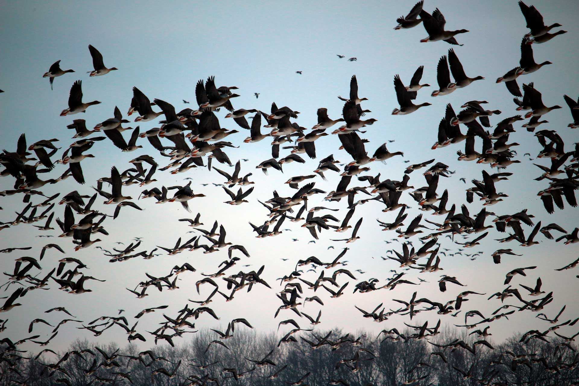 После насекомоядных видов улетают травоядные. Самыми последними отбывают утки, лебеди и гуси, которые могут найти пищу вплоть до того времени, когда вода покроется ледяной корочкой . Только тогда, добыча рыбы перестанет быть возможной.