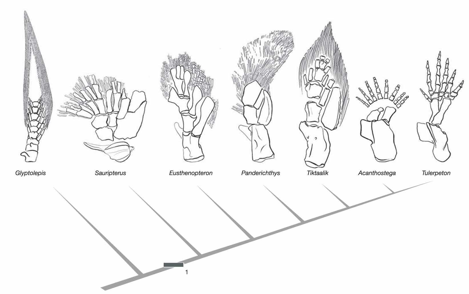 Рисунок 2. Кладограмма грудных плавников, эволюционирующих в конечность четвероногих.