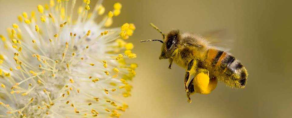 - Перенос пыльцы. На задней паре ног расположены специальные корзиночки. В них насекомое отправляет пыльцу, которую переносит в улей.
