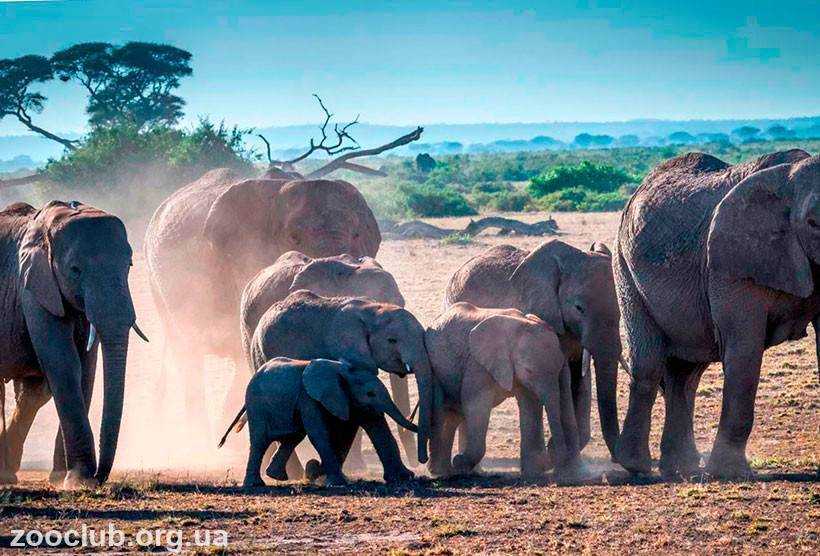 В пути слонята крепко держатся своими хоботками за хвосты матерей или старших сестер. Под их опекой они остаются до восьмилетнего возраста.