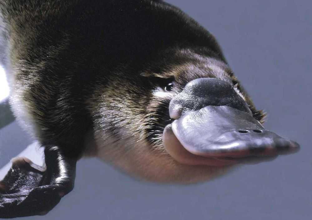 Утконос. Клюв в виде «лопаты» сразу наталкивает на мысль, что это животное является своего роста «птицей с шерстью», однако это не так. Млекопитающее действительно откладывает яйца в скорлупе и даже высиживает их в гнезде около 10 суток, после чего вскармливает голых и слепых птенцов молоком. Утконос свободно плавает благодаря обтекаемой форме тела и наличию перепонок на лапах. Питается ракообразными и мелкой рыбой.