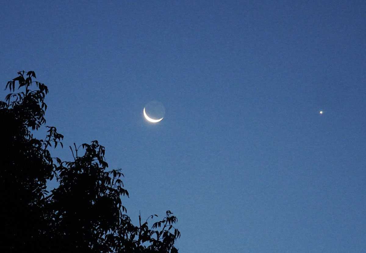 Обратите внимание: мы видим не только полумесяц старой Луны, но и ее пепельный свет — слабое свечение не освещенной Солнцем части Луны. Фото: Джеймс Роджер Самворт