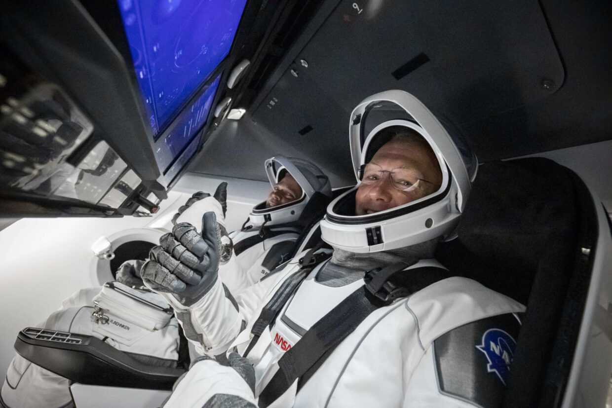 Даг Хёрли (впереди, капитан корабля, 53 года) и Боб Бенкен (сзади, пилот, 49 лет) .