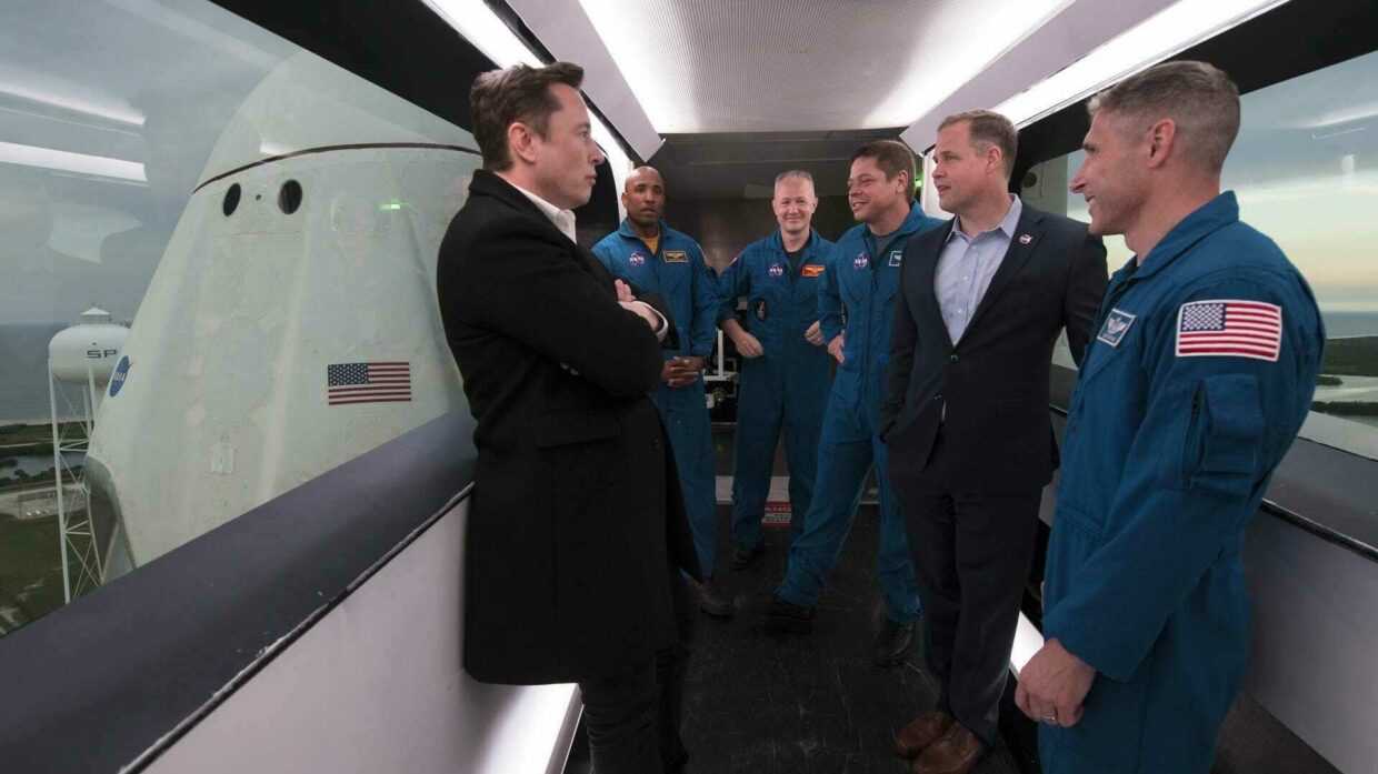 Илон Маск общается с космонавтами перед первым беспилотным пуском корабля Crew Dragon.