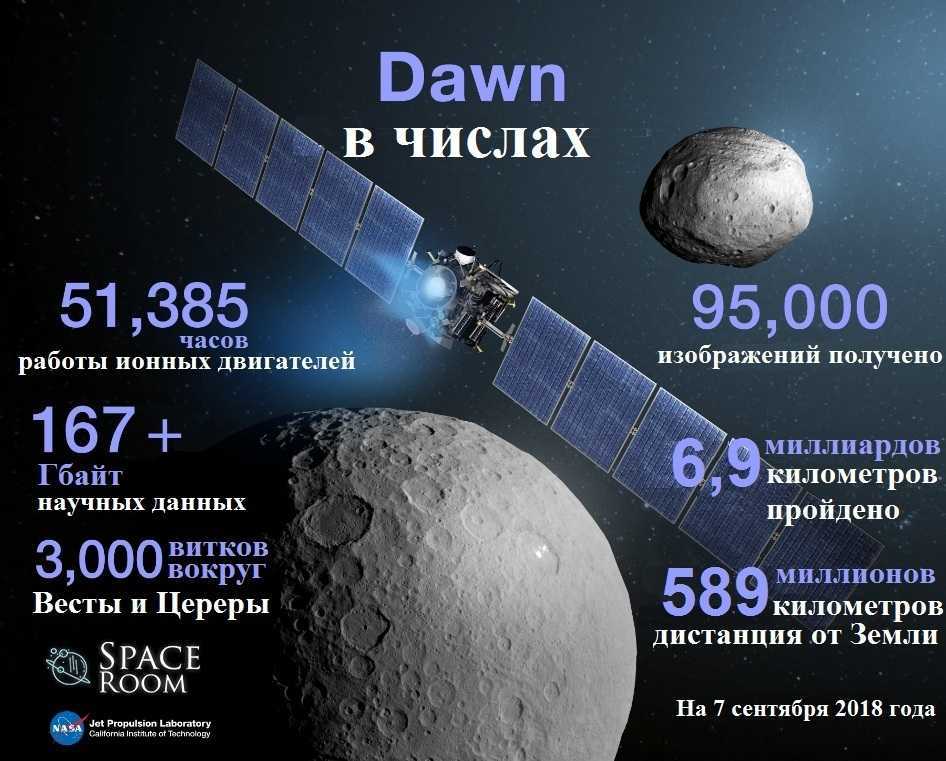В октябре 2018 года Dawn исчерпал свои ресурсы. Связь прервалась. На этом миссия по изучению Цереры для него была завершена.