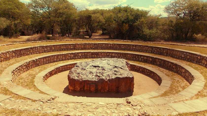 Железный метеорит Гоба имеет размер 2,7×2,7×0,9 метров и на 84 % состоит из железа плюс 16 % никеля. Масса «бруска», который никогда не взвешивали, оценивалась в 1920 г. в 66 т. В следствии окисления, забора научных образцов и вандализма метеорит похудел до 60 т. Тем не менее, он все еще остается самым крупным куском нерукотворного железа на планете.