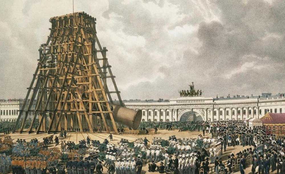 Александрийский столп был установлен с использованием специальной подъемной системы генерал-лейтенанта А. А. Бетанкура.
