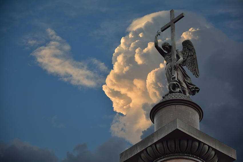 Александровская колонна получила нынешний вариант, созданный скульптором Б. Орловским. Но детское семейное прозвище Александра I — «наш Ангел» оказалось решающим.