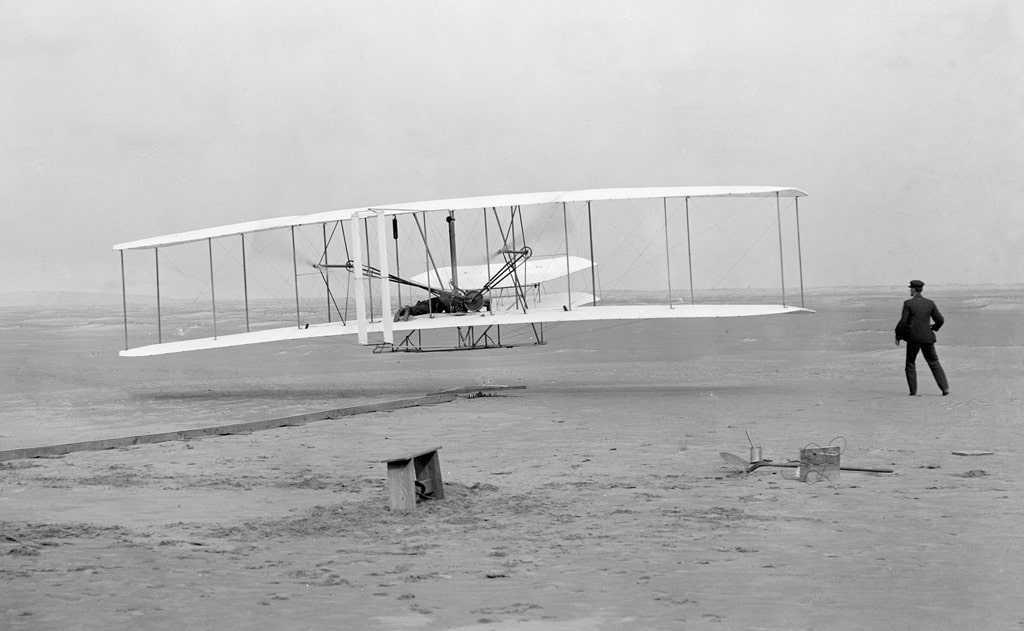 Местом первого полета «Флайера-1» был выбран морской пляж в Китти-Хоук, Северная Каролина, где братья испытывали все свои планеры вот уже третий год. Предсказуемые погодные условия и песчаные дюны, спасающие от жесткой посадки, были несомненным преимуществом. 14 декабря 1903 года Райт закончили последние приготовления и Уилбер лег за штурвал. Самолет разогнался, поднялся в воздух и … сразу упал, так что первая попытка оказалась неудачной. К счастью, машина не пострадала, и на ремонт ушла всего пара дней. Наконец, 17 декабря уже младший брат, Орвилл, взял на себя управление «Флайером» и смог по-настоящему взлететь. Легендарный первый полет продлился всего 12 секунд, за которые машина преодолела 36 метров, но эти секунды стали важнейшими мгновениями в истории авиации.